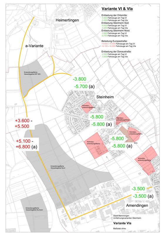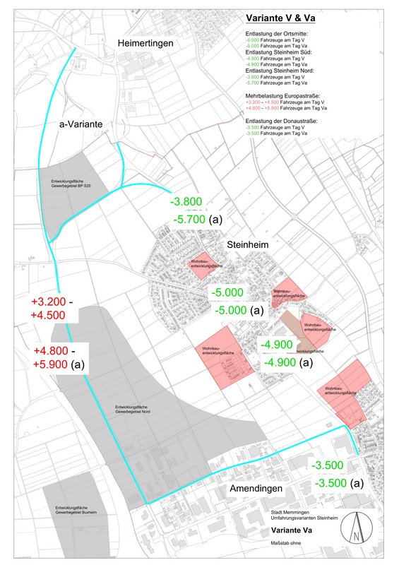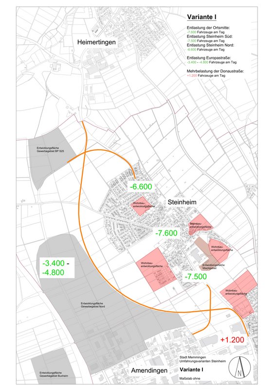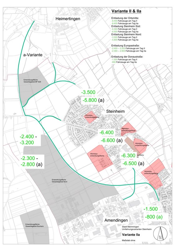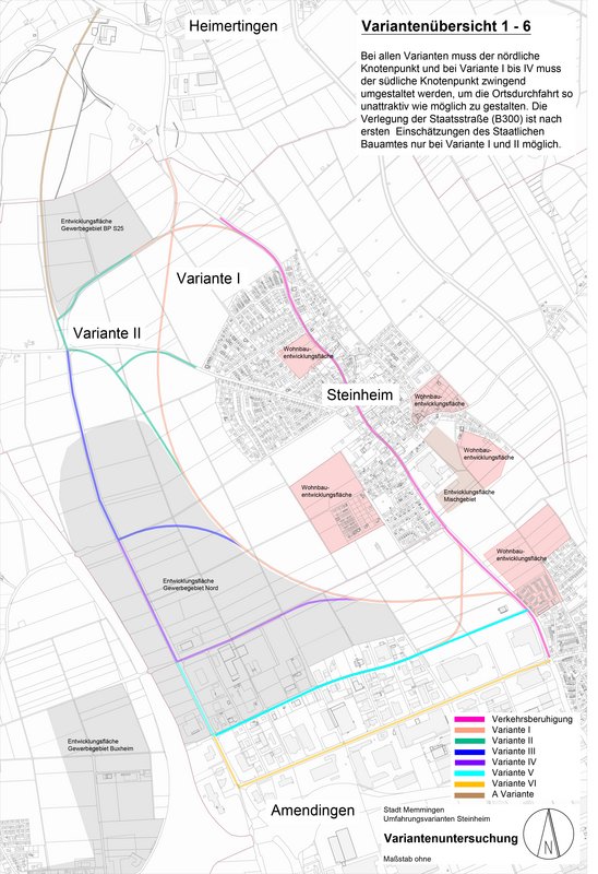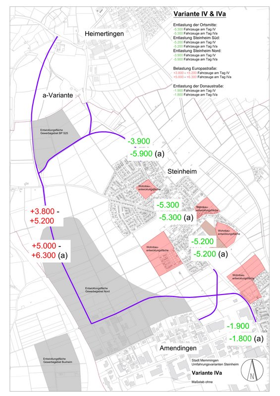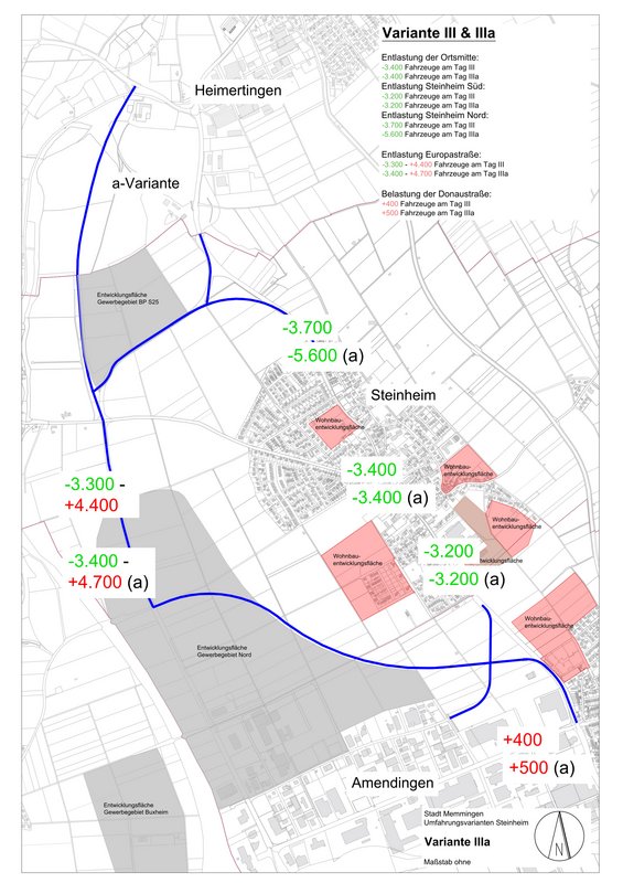 Die so gennannte A - Variante war angedacht um die Europastraße im Bereich des Gewerbegeietes Fuchsäcker direkt mit der B 312 und somit mit der Autobahnauffarht Berkeim zu verbinden. Ziel dieser Verbindung war es den überörtlichen Verkerh, vom Illertal kommend, direkt über die Europastraße anzubinden um die Durchfarht durch Steinheim unattraktiv zu machen. Im Januar 2021 fand ein Gespräch zwischen der Gemeinde Heimertingen und der Stadt Memmingen statt um über diese Anbindung zu sprechen. In Abstimmung mit der Gemeinde Heimertingen wurde die A-Variante auch aufgrund der hohen Flächenversiegelung nicht weiter verfolgt. Der Verkehr im Memminger Norden und auch über die Stadtgrenze hinaus muss weiter funktionieren, aufgrunddessen wird sich die Gemeinde Heimertigen über die weitere verkehrliche Entwicklung ebenfalls Gedanken machen und eine Verkehrsuntersuchung beauftragen.
