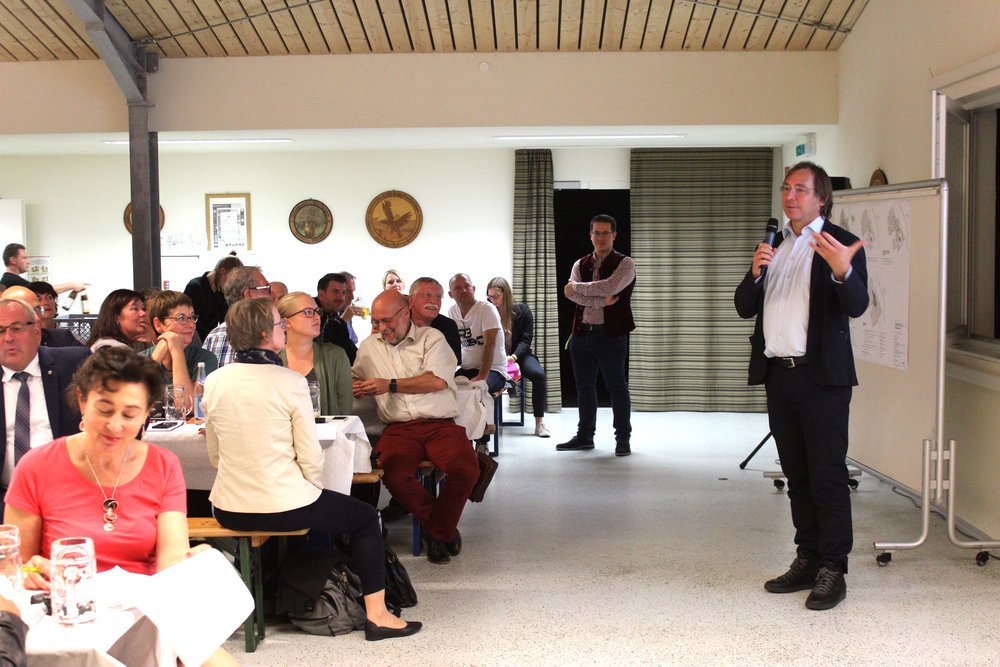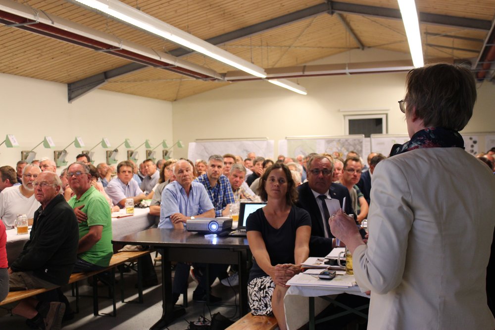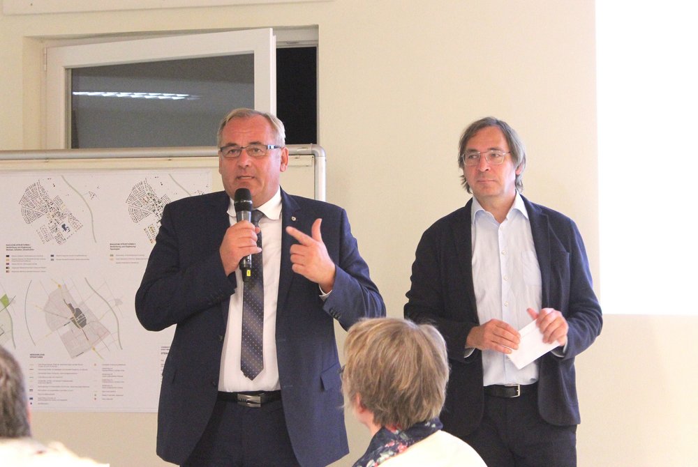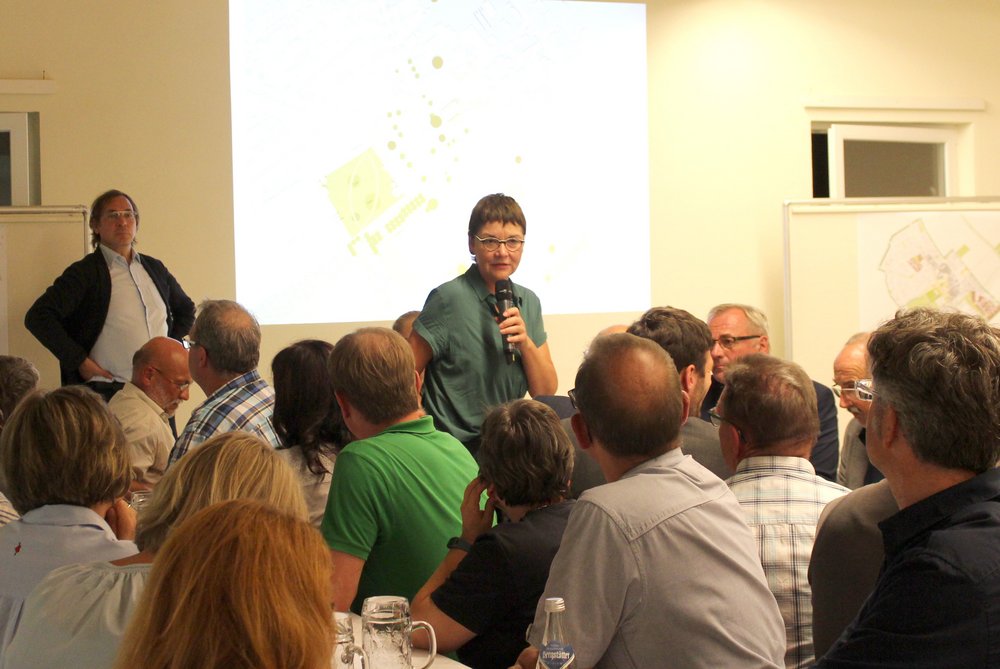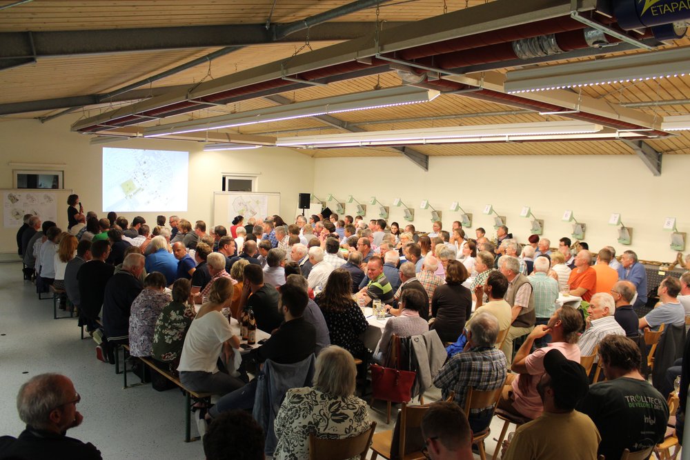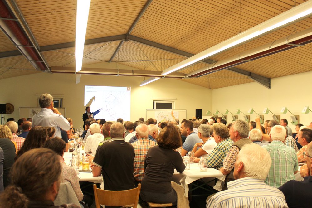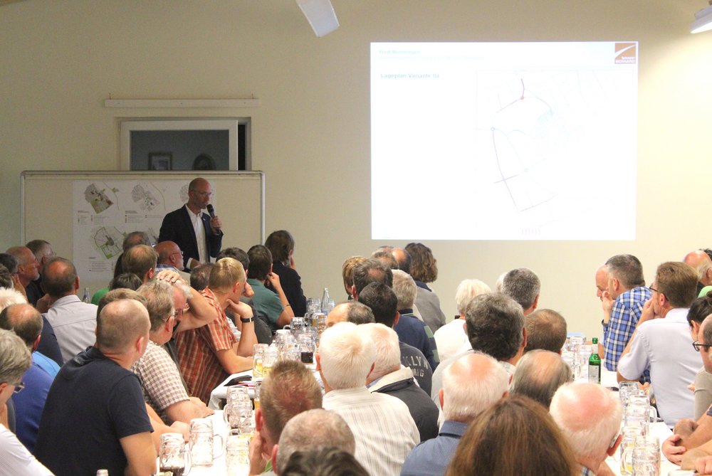 Über 200 Personen waren in die Steinheimer Schützenhalle gekommen. Dort fand unter Teilnahme des Oberbürgermeisters der Stadt Memmingen, Manfred Schilder, eine öffentliche Informationsveranstaltung zum Abschluss der zweiten Stufe der Vorbereitenden Untersuchungen statt - in Verbindung mit einer Bürgerversammlung des Bürgerausschusses. Die Vertreter*innen des Schützenvereins Steinheim trugen mit Raum und Bewirtung sehr zur guten Atmosphäre des Abends bei. Die Moderation übernahm Herr Prof. Rettich vom Team KARO*.