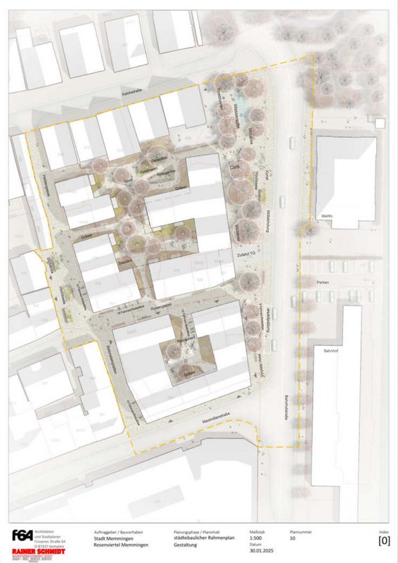 Die mit dem Siegerentwurf erfolgreich aus dem Wettbewerb hervorgegangenen Siegerbüros f64 Architekten und Stadtplaner GmbH, Kempten mit LARS Consult GmbH, Memmingen und Rainer Schmidt Landschaftsarchitekten GmbH, München wurden mit der Realisierung des Wettbewerbsergebnisses in Form der Planungsleistungen eines städtebaulichen Rahmenplans sowie zur nach der Konzeptvergabe erfolgende Erstellung des anschließenden Bebauungs- und Grünordnungsplans beauftragt.