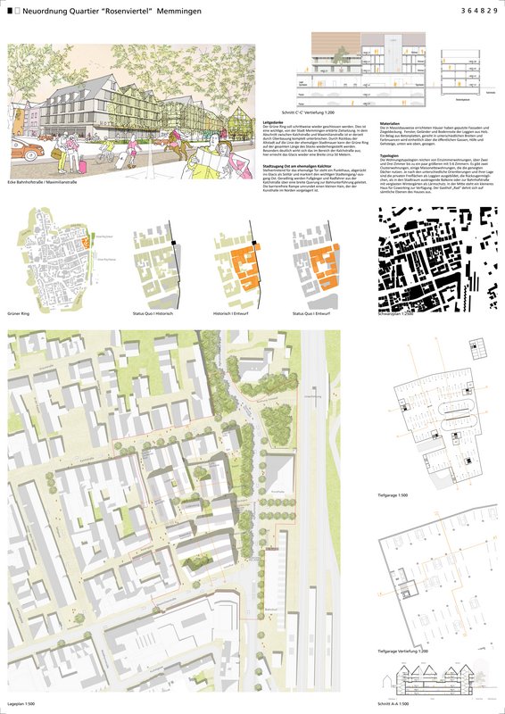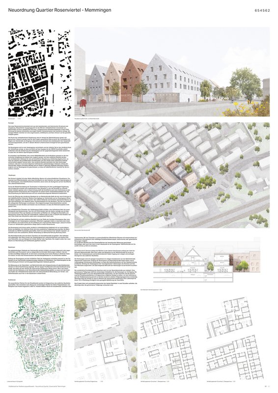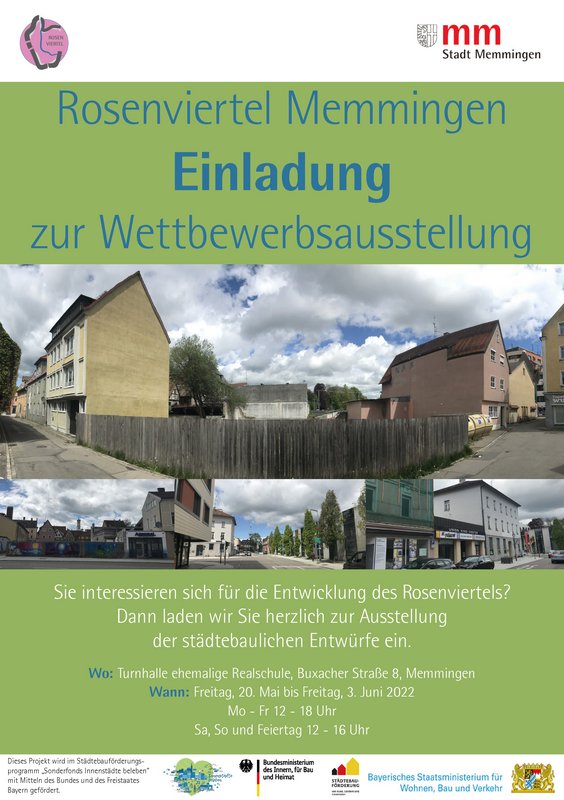 Die Stadt Memmingen führt für das ca. 2 ha große Rosenviertel zwischen Bahnhofstraße, Maximilianstraße, Heidengasse und Kalchstraße einen nichtoffenen städtebaulichen Realisierungswettbewerb durch. Nach der Vorbereitungsphase mit mehreren Bürgerbeteiligungen als Präsenzveranstaltung sowie in digitaler Form und der Gründung einer Arbeitsgruppe zur Erarbeitung des Auslobungstextes konnte am 25. Oktober 2021 schließlich der Wettbewerb Rosenviertel ausgelobt werden. 20 Teilnehmer wurden für den Wettbewerb ausgelost, wovon 14 Wettbewerbsarbeiten bis zum 22. April 22 abgegeben wurden.