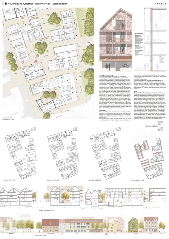 Am 18. Mai fand nun das Preisgericht zum Wettbewerb Rosenviertel statt, in welchem die 14 eingereichten Entwürfe von einer Jury, bestehend aus Vertretern der Stadt sowie Fach- und Sachpreisrichtern, bewertet wurden. Jeweils den 1. Platz belegten die Entwürfe von F64 (Kempten) mit LARS Consult (Memmingen) und Rainer Schmidt Landschaftsarchitekten (München), von deffner voitländer (München) sowie von sophie & hans (Berlin).