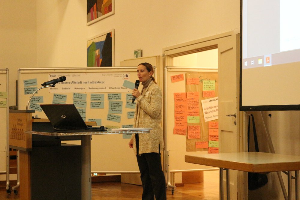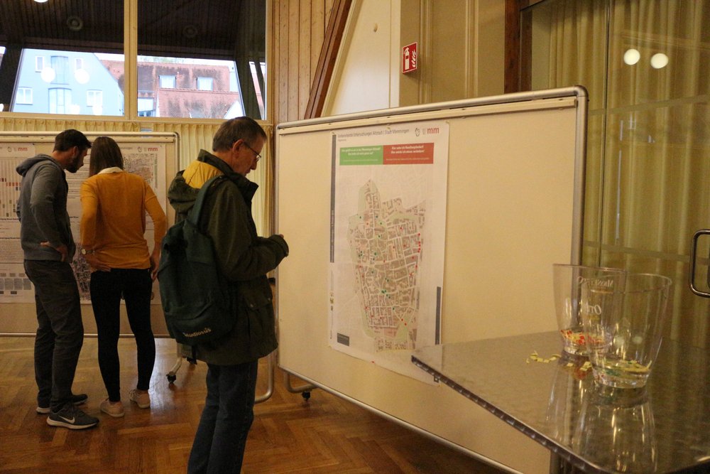 Nach den Fachvorträgen waren die Anwesenden gefragt und konnten sich in die vier Themenbereiche, betreut durch Fachplaner und Mitarbeiterinnen und Mitarbeiter der Stadt Memmingen, einbringen. In den Themenbereichen konnten Hinweise, Wünsche, Lob aber auch Kritik angebracht und im Austausch mit den Planern und städtischen Mitarbeitern Ideen entwickelt werden. Nach der Beteiligungsphase, in der immer wieder ein Wechsel zwischen den Themengebieten möglich war, wurden alle Ergebnisse im Plenum vorgestellt.